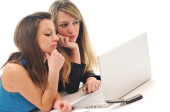 dwa młody student szczęśliwy dziewczyna pracy na laptopie
