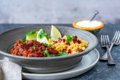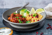 Zdjęcie "Marokańska jagnięcina z cytryną i granatem kuskus" może być wykorzystywane do celów osobistych i komercyjnych zgodnie z warunkami zakupionej licencji Royalty-free. Obraz jest dostępny do pobrania w jakości wysokiej rozdzielczości do 5760x3840.