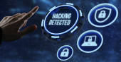 Internet, biznes, Technologia i koncepcja sieci. Koncepcja prywatności technologii bezpieczeństwa cybernetycznego. Wirtualny przycisk.