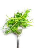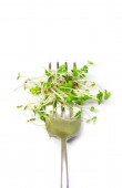 A heap of sprouted coriander seeds isolated on white. Coriander microgreens.