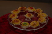 Various desserts in candy bar food buffet during hotel brunch. Self service in hotel restaurant
