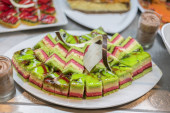 Zdjęcie "Various desserts in candy bar food buffet during hotel brunch. Self service in hotel restaurant" może być wykorzystywane do celów osobistych i komercyjnych zgodnie z warunkami zakupionej licencji Royalty-free. Obraz jest dostępny do pobrania w jakości wysokiej rozdzielczości do 5760x3840.