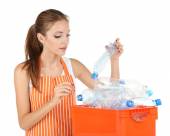Dziewczyna sortowanie butelek z tworzyw sztucznych