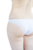 młoda dziewczyna lekkoatletycznego na białym tle, widok z tyłu