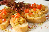 Bruschetta (pieczywo włoski tosty czosnkowe) z duszonymi warzywami