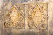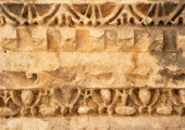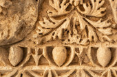 ancient stone-cut floral ornament on the ruins of a building in the ancient city of Myra, Turkey