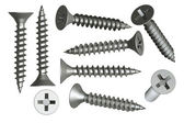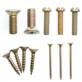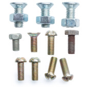 śruby głowy, śruby, nakrętki stalowe na białym tle