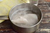 Pour in boiled chilled water. The water should only slightly cover the fish. Mix everything, pour in lemon juice and refrigerate for several hours. Can be removed overnight.