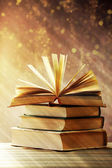 antykwariusz książek na drewnianym stole z ciepłym światłem