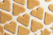 ginger cookie background in the shape of a heart on a black background
