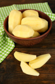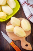 Surowe ziemniaki obrane w misce na deski do krojenia, na tle drewniane