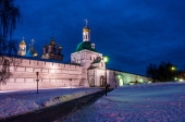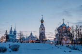 Wieczorny widok na Kreml z drugiej strony rzeki Wołogdy.