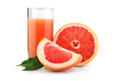 pełną szklanką i dzbanek na białym tle owoce i Sok grejpfrutowy