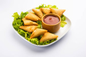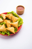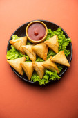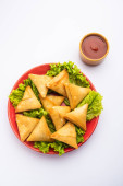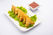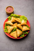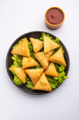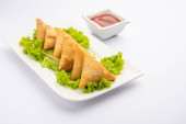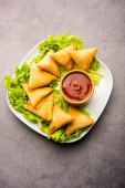 cocktail mini triangle samosa made using patti or strip, popular home made snack from India