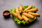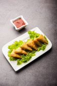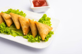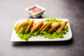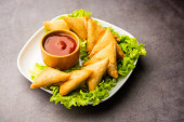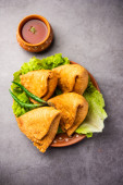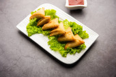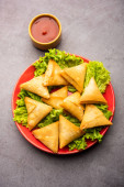 cocktail mini triangle samosa made using patti or strip, popular home made snack from India