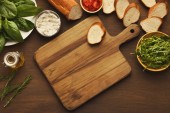 Białe tosty z serem śmietankowym i szpinakiem na drewnianej desce