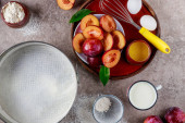 Zdjęcie "Ingredients for dough for plum cake on wooden table. Flat lay." może być wykorzystywane do celów osobistych i komercyjnych zgodnie z warunkami zakupionej licencji Royalty-free. Obraz jest dostępny do pobrania w jakości wysokiej rozdzielczości do 5760x3840.