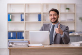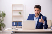 Młody pracownik męski pracujący w biurze
