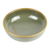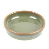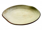 Vintage ceramic plate, Empty plate with green edge, isolated on white background with clipping path, Side view
