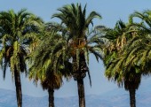 Date Palms of Coachella Valley California and Mountain Range in a Background.