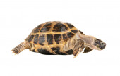 dziecko herman żółw na białym tle na białym tle testudo hermanni
