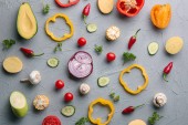 Creative cooking healthy organic food concept background made of colourful fruit and vegetables