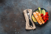 Zdjęcie "Vegetables healthy salad with red and yellow cherry tomatoes, pepper and green salad leafs on white rustic ceramic plate" może być wykorzystywane do celów osobistych i komercyjnych zgodnie z warunkami zakupionej licencji Royalty-free. Obraz jest dostępny do pobrania w jakości wysokiej rozdzielczości do 5760x3840.
