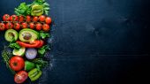 Healthy food arrangement in realistic heart shape, diet for heart and cardiovascular system.
