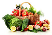 Skład z surowych warzyw i wikliny kosz
