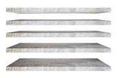 Istnieją dwa style białe drewniane półki na białym tle może zrobić reklamy, produkty miejsce, billboardy.