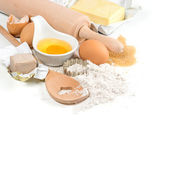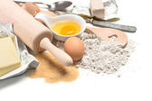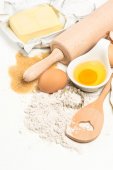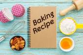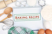 książkę kucharską i pieczenia składniki jajka, mąkę, cukier, masło, y