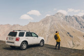 Jazda samochodem terenowym na szczycie góry na dużej wysokości