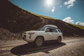 Zdjęcie "Jazda samochodem terenowym na szczycie góry na dużej wysokości" może być wykorzystywane do celów osobistych i komercyjnych zgodnie z warunkami zakupionej licencji Royalty-free. Obraz jest dostępny do pobrania w jakości wysokiej rozdzielczości do 5760x3840.