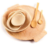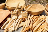 Handcrafted wooden spoons and ladle isolated on white background