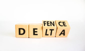 Symbol Covid-19 omicron lub deltacron. Zamienił sześciany i słowo "omicron" na deltacron. Piękne białe tło. Medyczny, covid-19 Corona omicron lub deltacron pojęcie. Przestrzeń kopiowania.