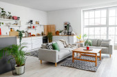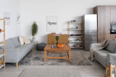 Zdjęcie "Wnętrze stylowego salonu z półką na książki" może być wykorzystywane do celów osobistych i komercyjnych zgodnie z warunkami zakupionej licencji Royalty-free. Obraz jest dostępny do pobrania w jakości wysokiej rozdzielczości do 5760x3840.