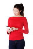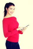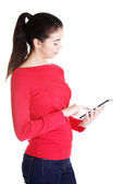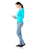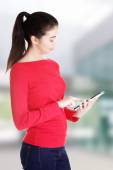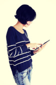 ładna kobieta, pracująca na komputerze typu tablet