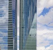 Madrid, Hiszpania - 28 maja 2014: Madryt centrum biznesu, nowoczesne drapacze chmur
