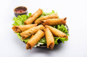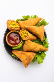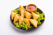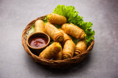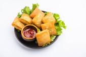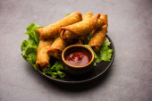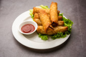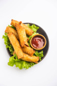 Rolka w kształcie cygara Samosa są idealnym pokarmem palca podawane z ketchupem
