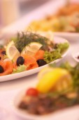 grillowany stek z łososia z zielonej fasoli, na stół urządzone