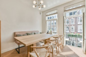 Zdjęcie "Urocza jadalnia z drewnianym stołem" może być wykorzystywane do celów osobistych i komercyjnych zgodnie z warunkami zakupionej licencji Royalty-free. Obraz jest dostępny do pobrania w jakości wysokiej rozdzielczości do 5760x3840.