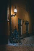 Zdjęcie "Zimowa noc Bożego Narodzenia widok Porvoo, Borga, Finlandia, Uusimaa, ze śniegiem pada i światła uliczne, z wieczorem Boże Narodzenie oświetlenie nowego roku, drewniane domki" może być wykorzystywane do celów osobistych i komercyjnych zgodnie z warunkami zakupionej licencji Royalty-free. Obraz jest dostępny do pobrania w jakości wysokiej rozdzielczości do 5760x3840.