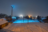 Zdjęcie "Zimowa noc Bożego Narodzenia widok Porvoo, Borga, Finlandia, Uusimaa, ze śniegiem pada i światła uliczne, z wieczorem Boże Narodzenie oświetlenie nowego roku, drewniane domki" może być wykorzystywane do celów osobistych i komercyjnych zgodnie z warunkami zakupionej licencji Royalty-free. Obraz jest dostępny do pobrania w jakości wysokiej rozdzielczości do 5760x3840.
