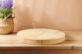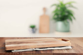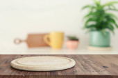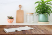pusty stół i nieostre nowoczesne tło kuchni. koncepcja wyświetlania produktu