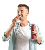 Zdjęcie "Młody człowiek z butelką mleka na białym tle" może być wykorzystywane do celów osobistych i komercyjnych zgodnie z warunkami zakupionej licencji Royalty-free. Obraz jest dostępny do pobrania w jakości wysokiej rozdzielczości do 5760x3840.