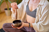 Zdjęcie "zbliżenie młody jogin kobieta trzyma tybetański misa i kij w ręce" może być wykorzystywane do celów osobistych i komercyjnych zgodnie z warunkami zakupionej licencji Royalty-free. Obraz jest dostępny do pobrania w jakości wysokiej rozdzielczości do 5760x3840.