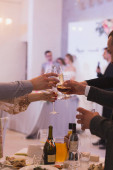 Piękna młoda para z szklanki czerwonego wina w restauracji luksusowe.