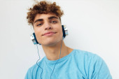 przystojny facet muzyka technologia rozrywka odizolowane tło