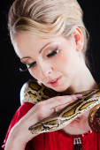 piękna dziewczyna ubrana na różowo z małym psem na biały