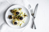 gnocchi z dzikich mushrooms.style rustic.selective ostrości.